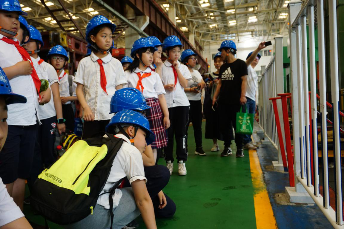 當看到主動化大型沖壓線時,先生們目不斜視的看著機器手臂從一臺設備的“嘴里”拿出,放到另外一臺設備的“嘴里”,都感應很是驚奇!隨行的教員和家長教育們爭先恐后地拿回稱道聲,感傷高科技化創新的奇妙和小鴨的成長的太陽太陰牙異。