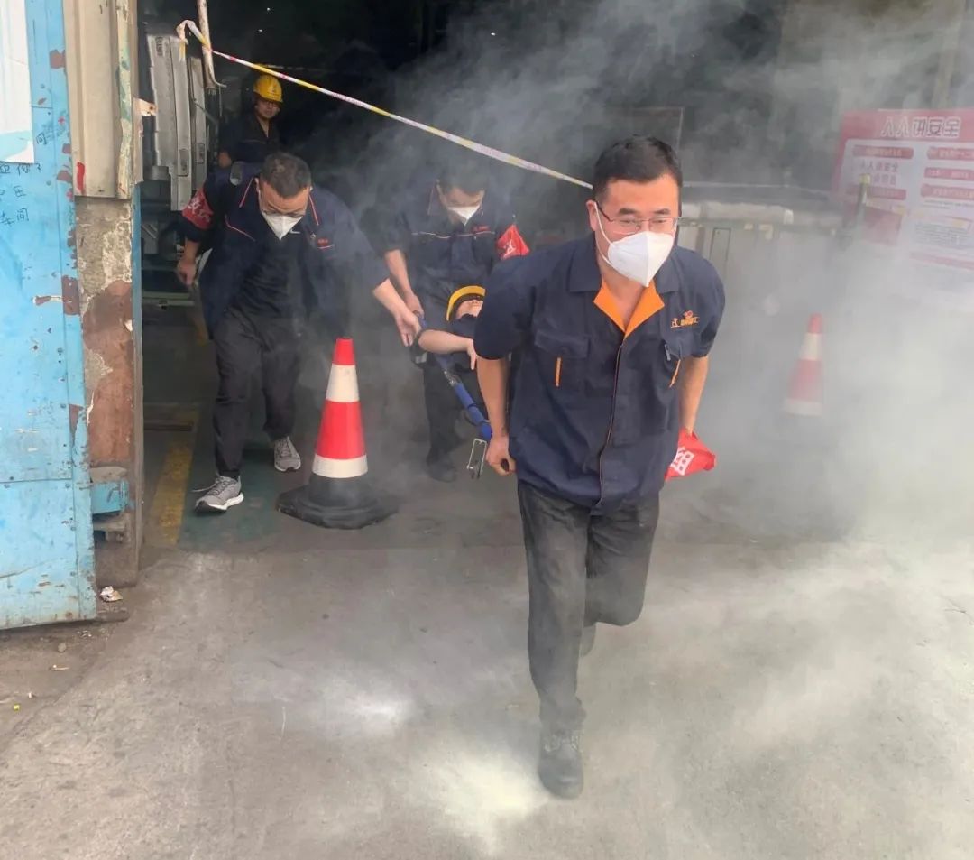 “練習訓練起頭!”跟著變亂應搶救濟批示帶領小組的一聲令下,本次練習訓練正式起頭。在火源四周,一位職工昏倒在地,搶救救濟組攜滅兵器奔向火源,當即展開撲救任務;醫療救護組利用擔架將受傷職員轉移至寧靜地點,對傷者停止告急搶救;現場保衛組職員利用鑒戒線斷絕火警地區,避免變亂擴展和次生災難產生;后勤保證組職員構造車輛,將受傷職員輸送至病院治療;其余職工順遂撤退到寧靜地帶后,當即盤點上報人數。