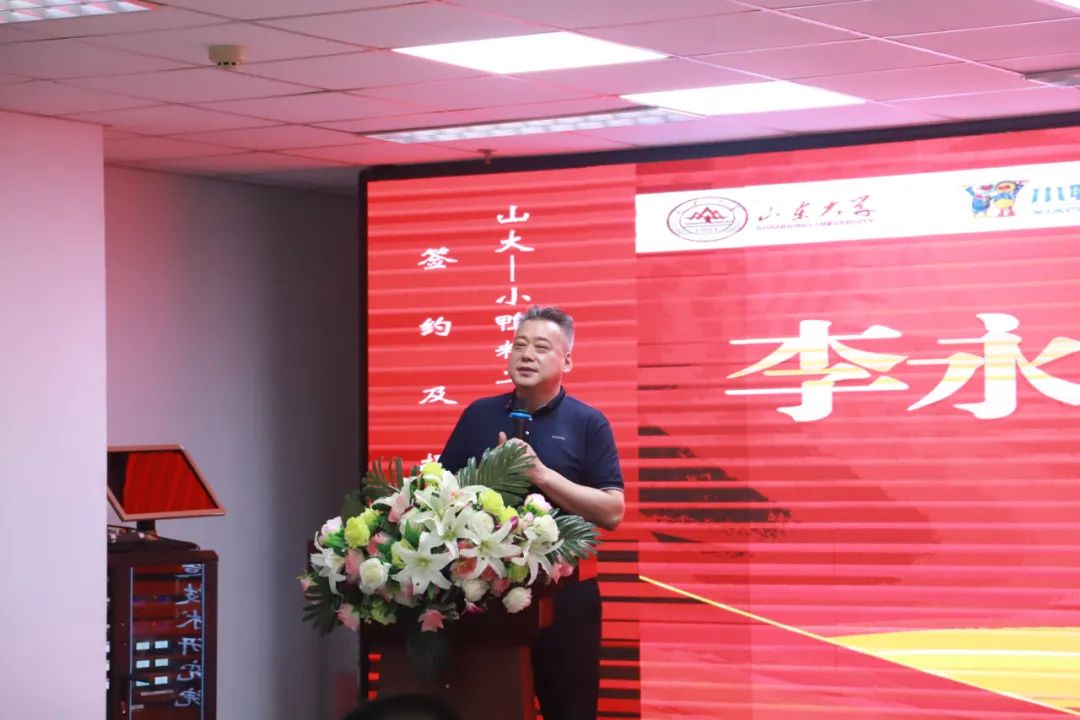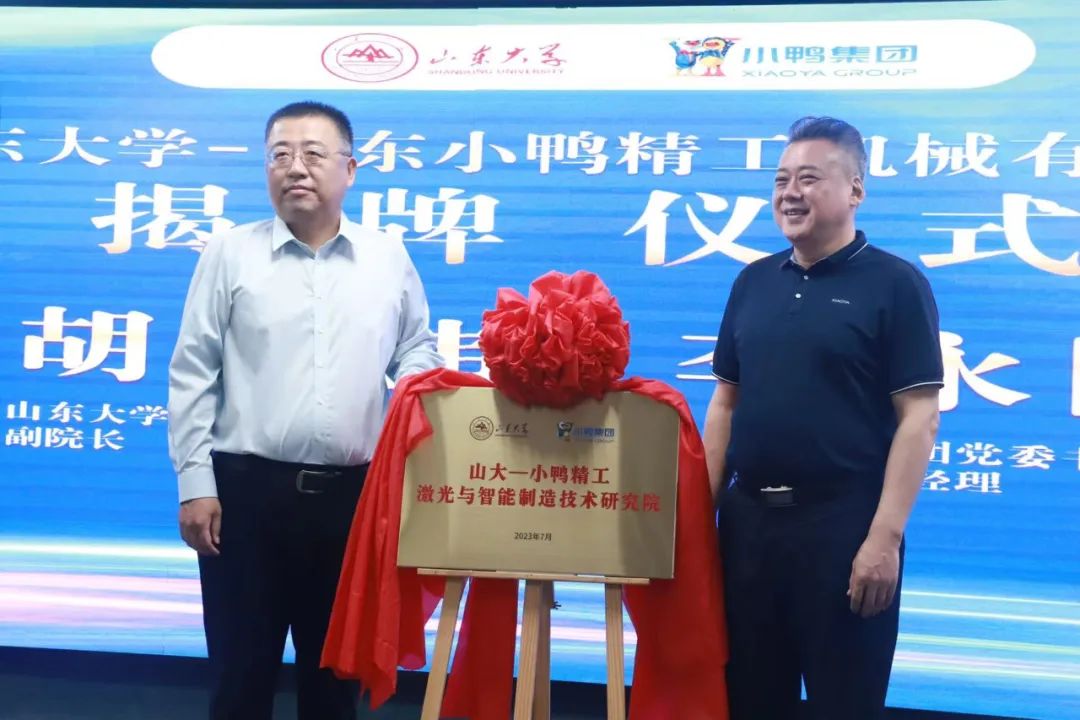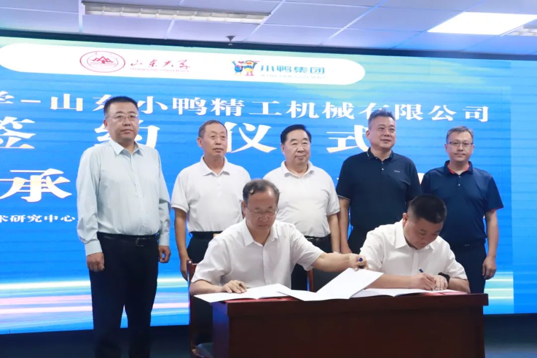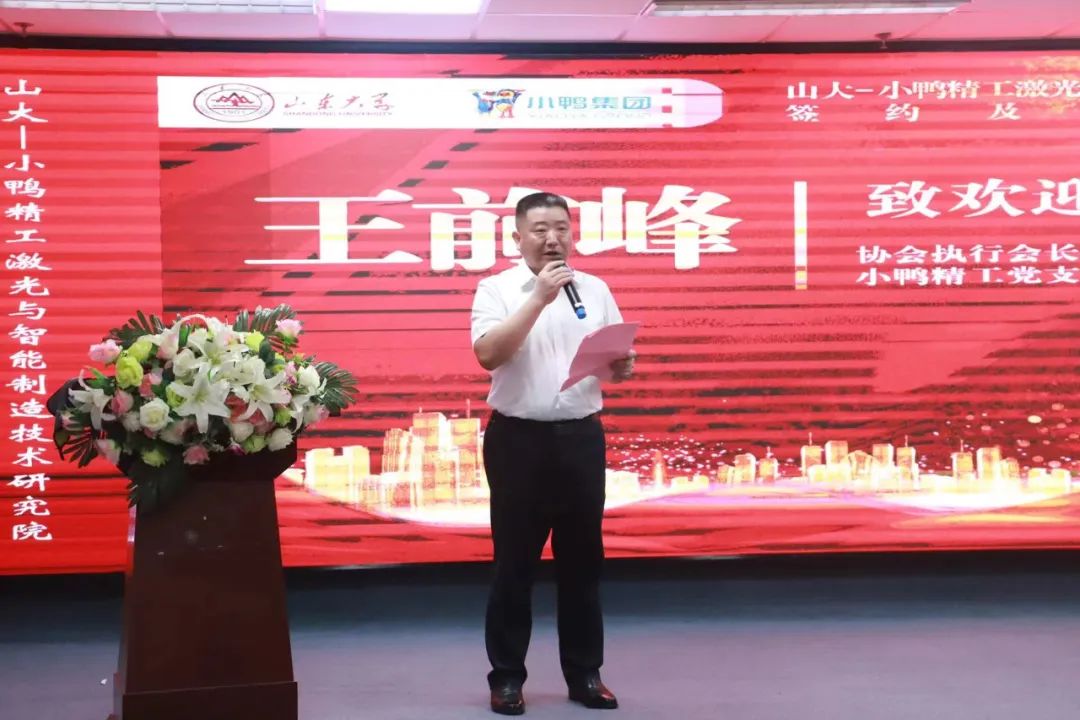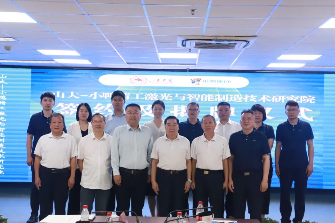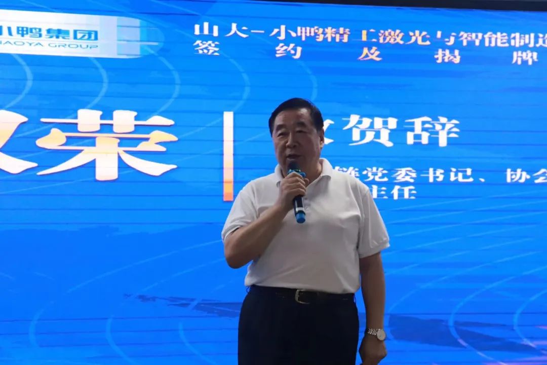 小鴨精密支部布告、總司理王前峰和安徽大學專業張承瑞教學搭配履行山大-小鴨精工水鬼激光束與智力制作而成手藝活專題討論院互建和談。