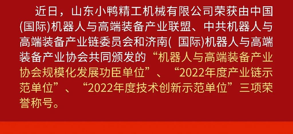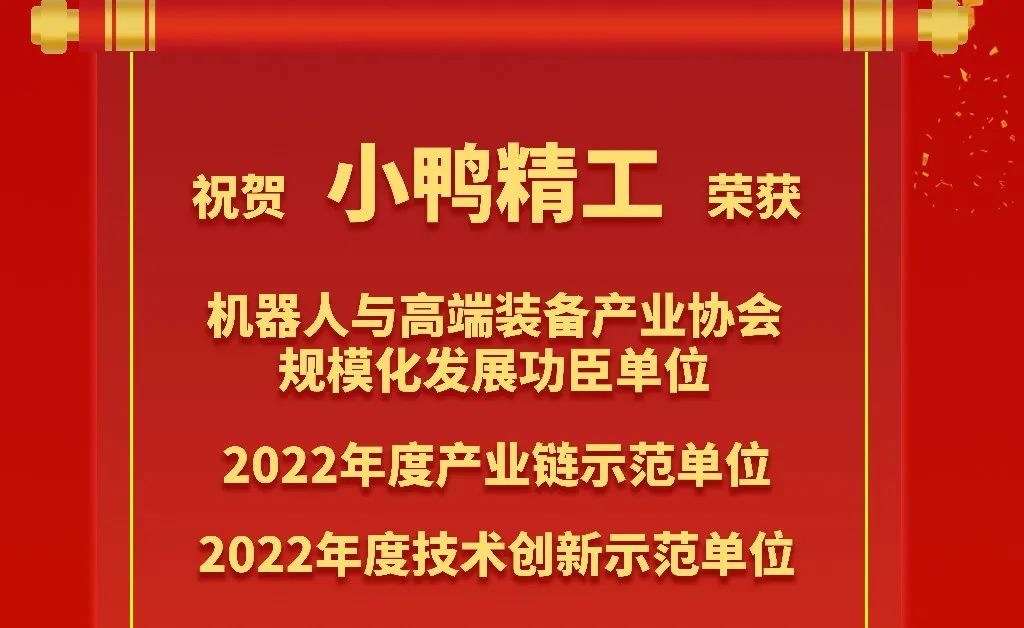捷報!小鴨精工獲2022年度財產鏈樹模單位等三項聲譽稱呼